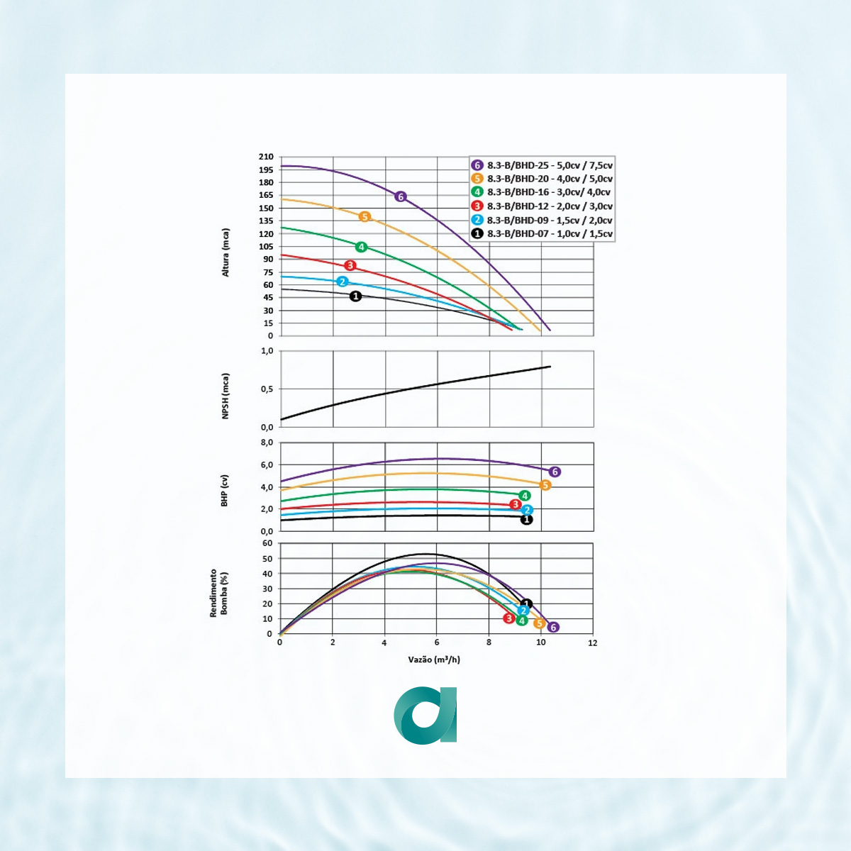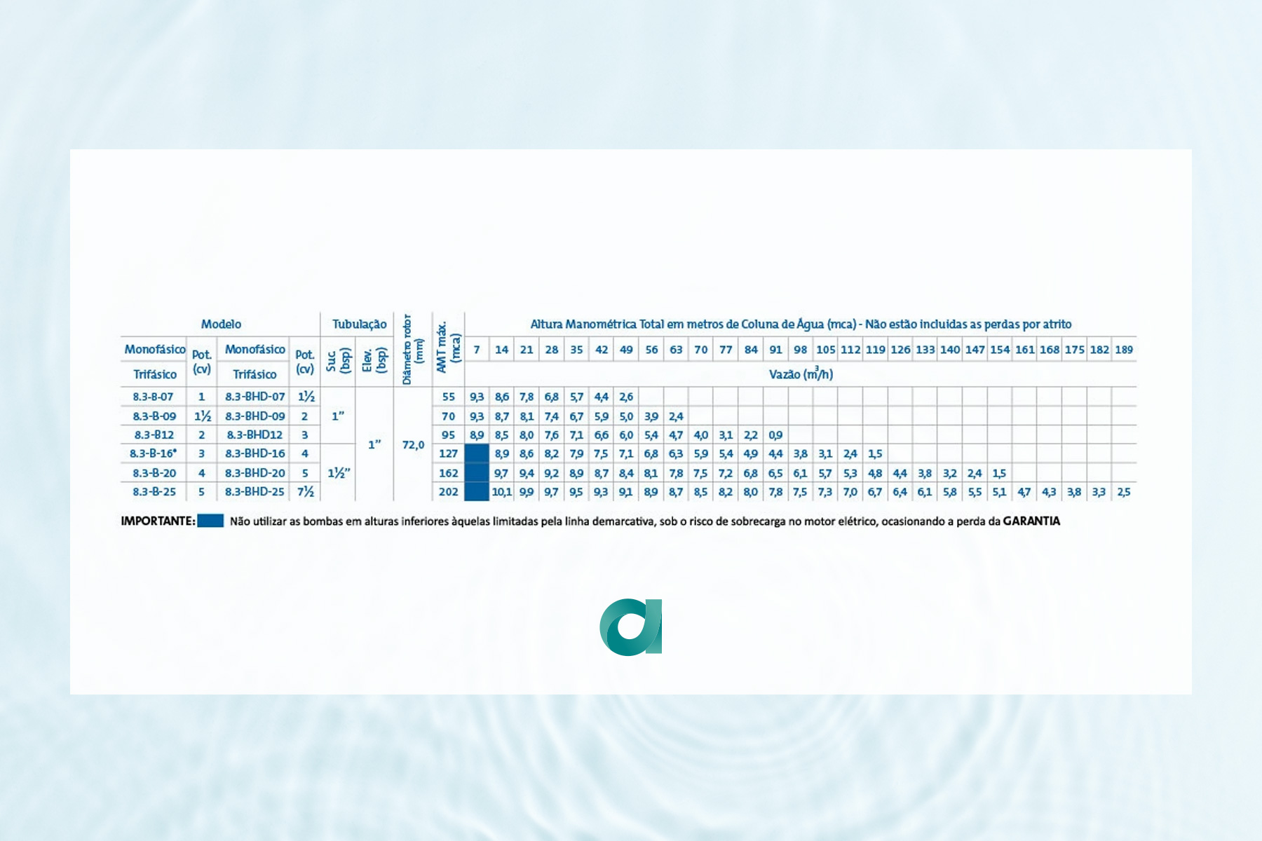 - Grau de proteção: IP 55 – nos modelos 8.3 BHD e e 8.3-B acima de 3,0cv