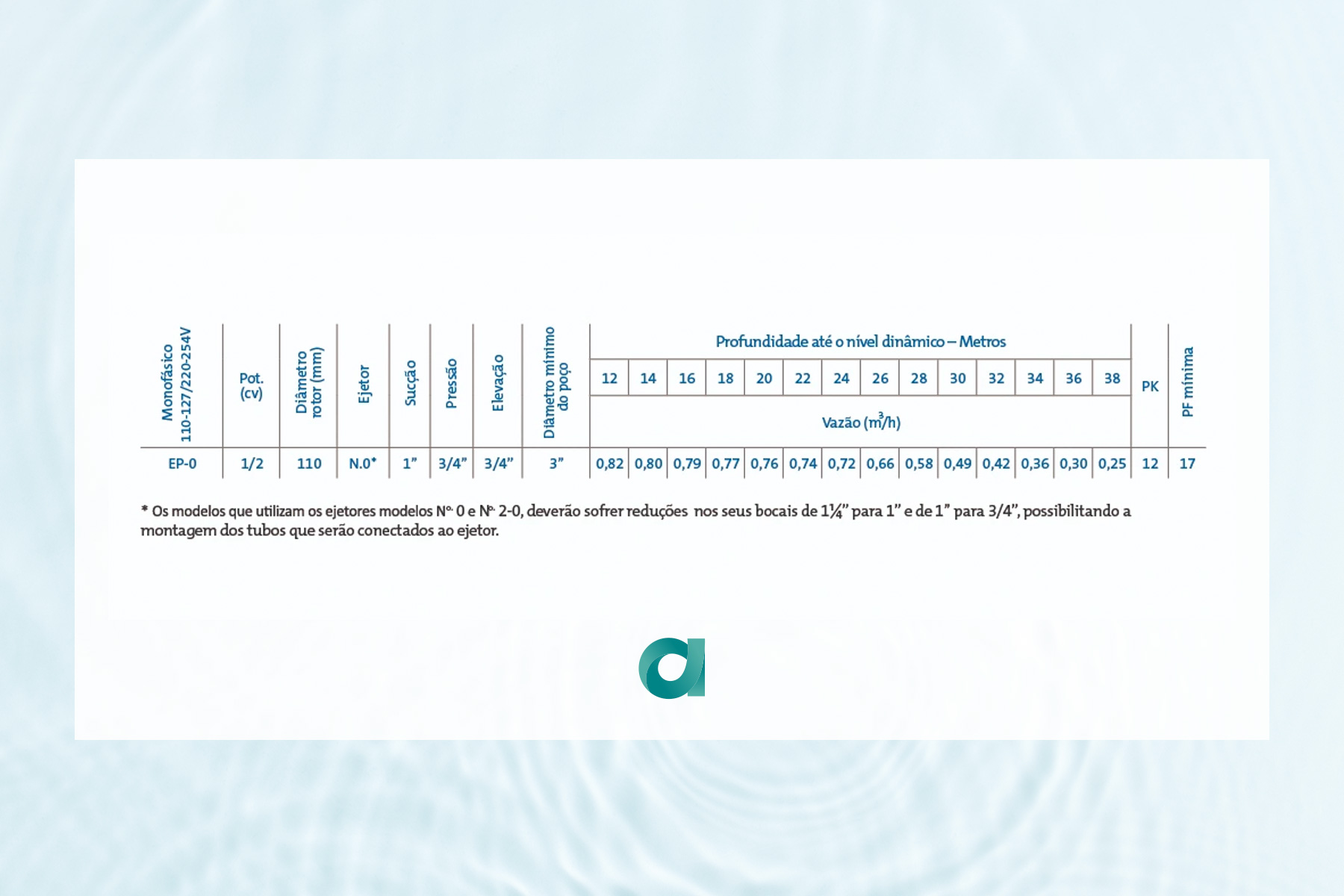 - PF: Submergência mínima indicada