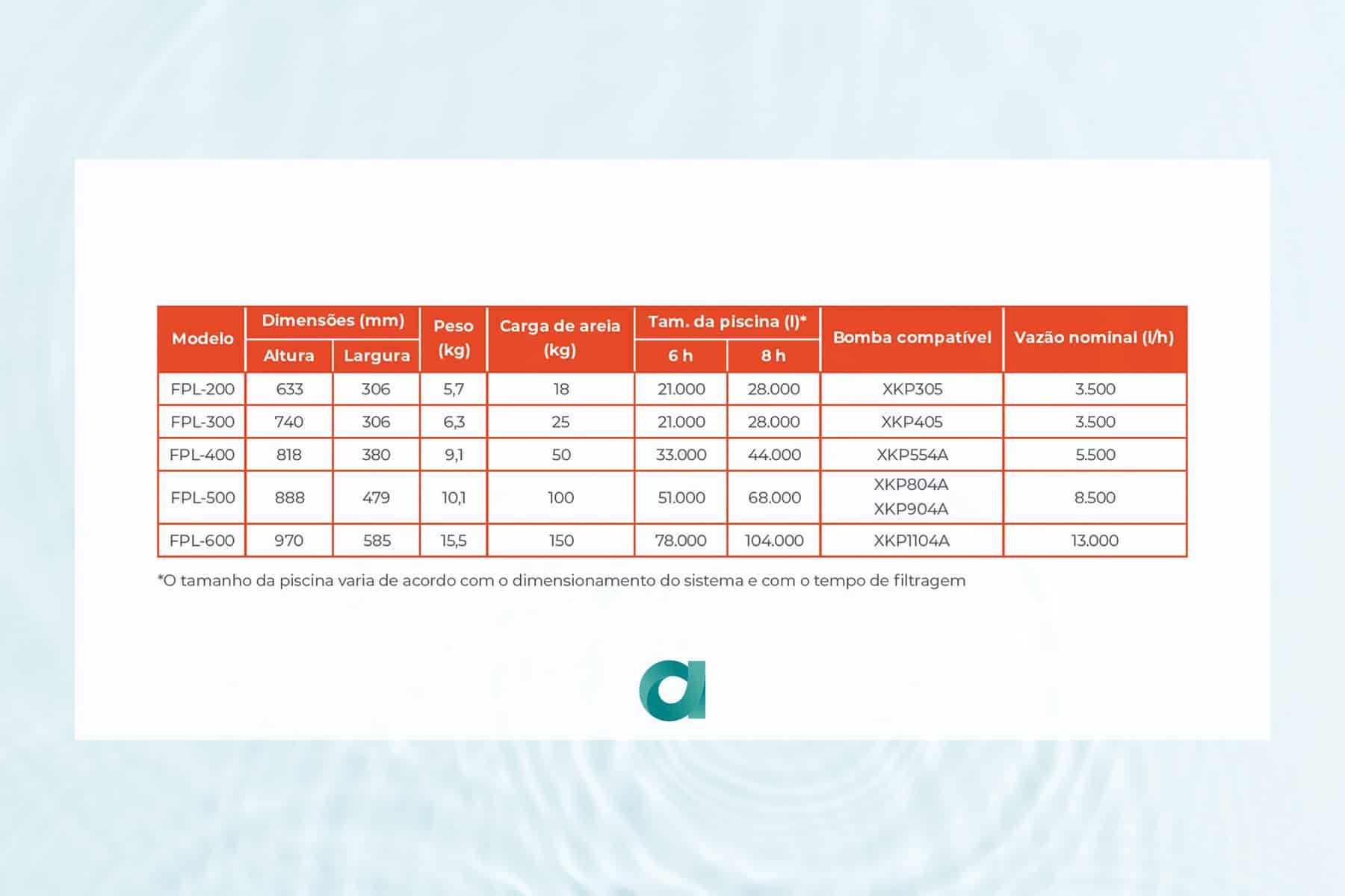 Os filtros de piscina Lepono elevam a eficiência de retenção de impurezas e simplificam o tratamento da água em piscinas de vários tamanhos. A válvula em ABS reforçado com fibra de vidro e o difusor interno evitam canais na areia, garantindo filtragem homogênea. Com braçadeira de acesso rápido para manutenção e 6 posições de operação, o uso no dia a dia fica mais prático e seguro.