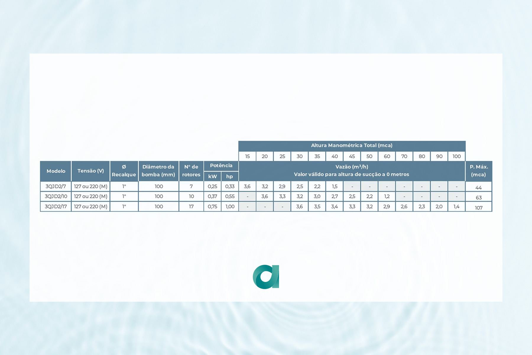 A motobomba submersa 4” QJD Dongyin é indicada para água limpa em poços artesianos, residências, pequenos prédios e sistemas de irrigação. Com corpo em inox AISI 304, componentes em ferro fundido e rotores flutuantes, entrega pressão elevada mesmo em grandes profundidades. Disponível em 220 V, suporta oscilações de tensão e garante ótimo desempenho com sistema multiestágio.