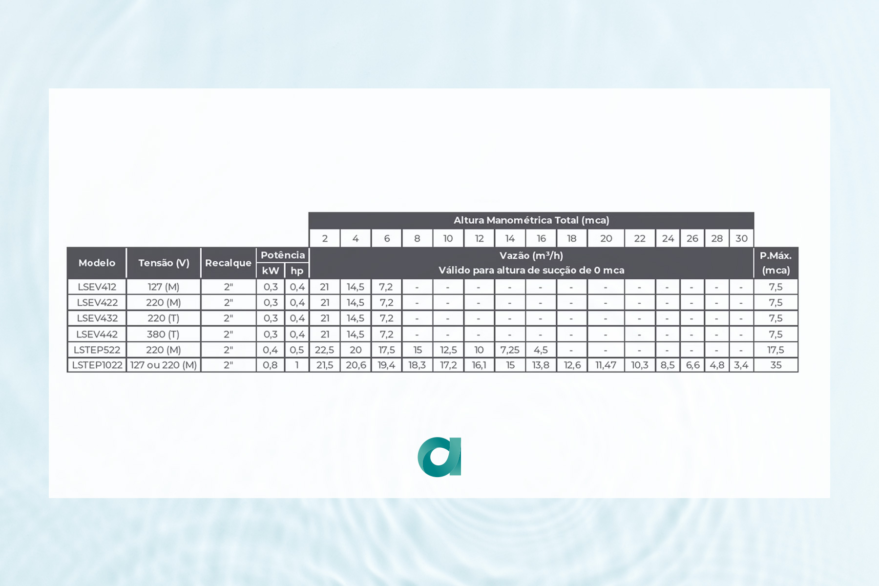 A Lepono LSEV/LSTEP é uma motobomba submersível para água turva ou suja, indicada para cisternas, obras, minas, pedreiras e irrigação. Com corpo em ferro fundido, eixo em inox AISI 304 e motor imerso em óleo com protetor térmico, oferece resistência e segurança mesmo em líquidos mais densos. Disponível em monofásica ou trifásica, acompanha cabo de 8 m e suporta trabalho contínuo em até 5 m de profundidade.