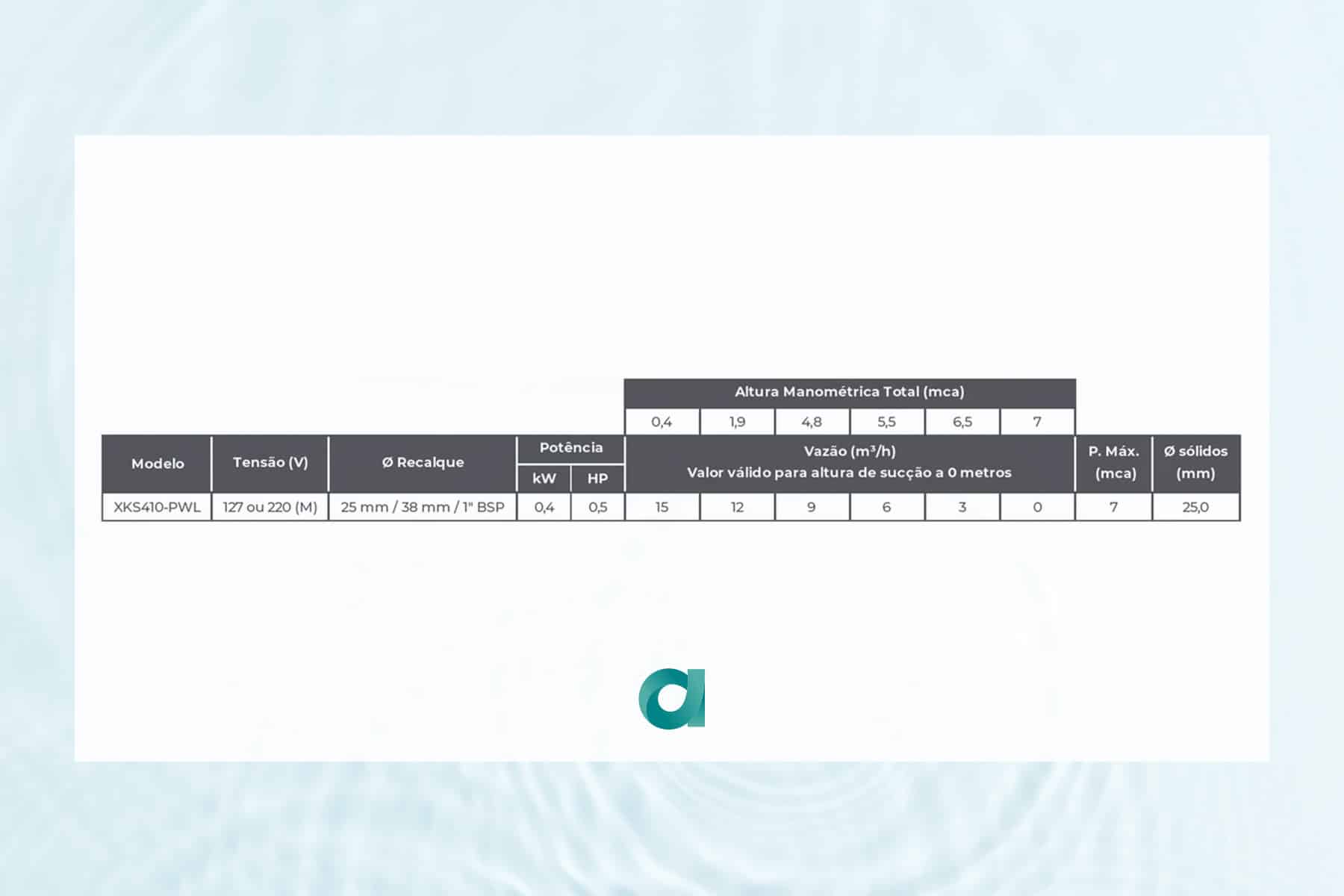 A Lepono XKS (PWL) é uma motobomba submersível para drenagem e transferência de água limpa em cisternas, reservatórios e porões com até 7 m de profundidade. Com corpo em termoplástico, eixo em aço carbono SAE 1045 e recalque lateral, oferece instalação simples, leveza e bom desempenho em aplicações residenciais e comerciais. Disponível em 127 V ou 220 V, conta com boia de nível, que evita o funcionamento a seco e prolonga a vida útil do equipamento.