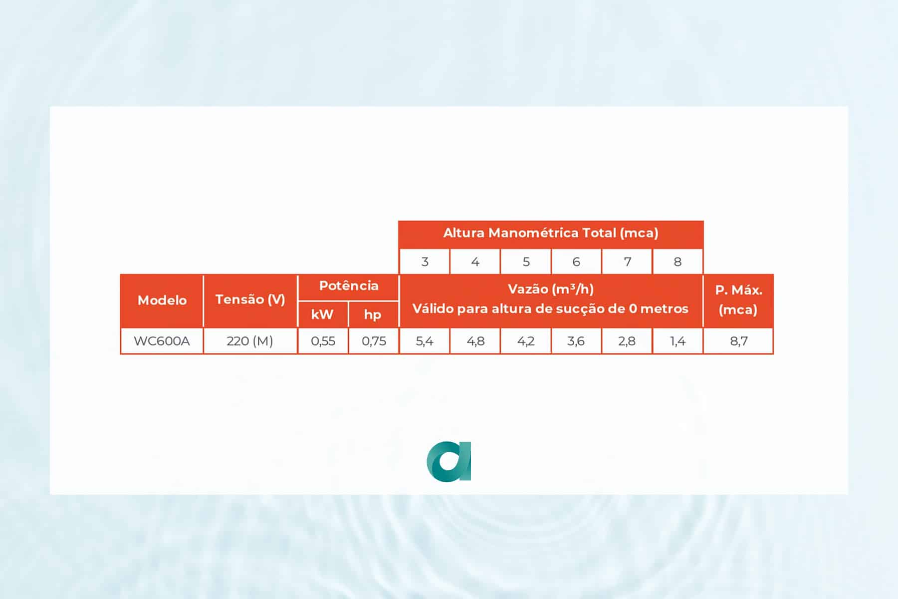 • Indicada para bombeamento de água residuais de ambientes domésticos